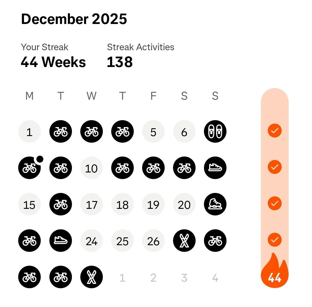 1. My points weren't that high ... But something is better than nothing. Look at all these badge days I got on Strava! Screenshot below... (looks great when paired with november, which I will choose to leave out)